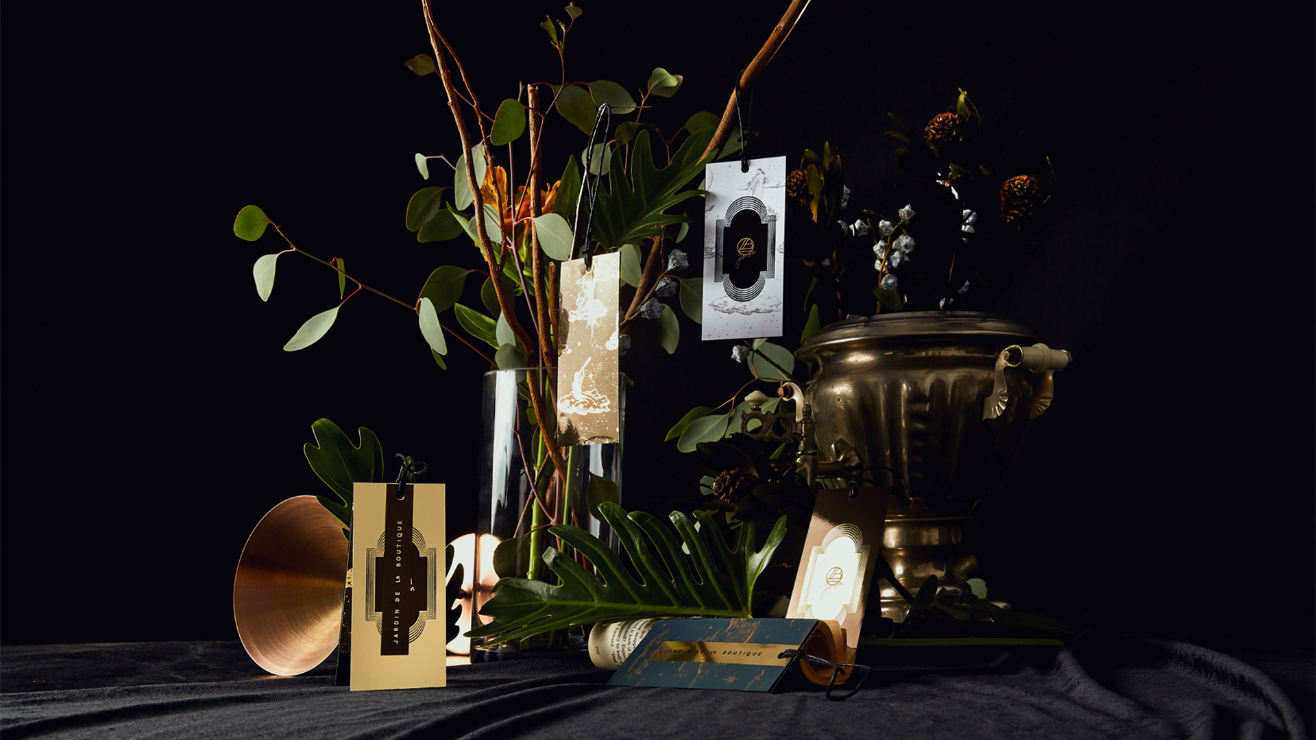 Packaging is designed by using intergalactic inspiration, including numerous stars, alchemy structures, and sophisticated hand-drawn illustrations.